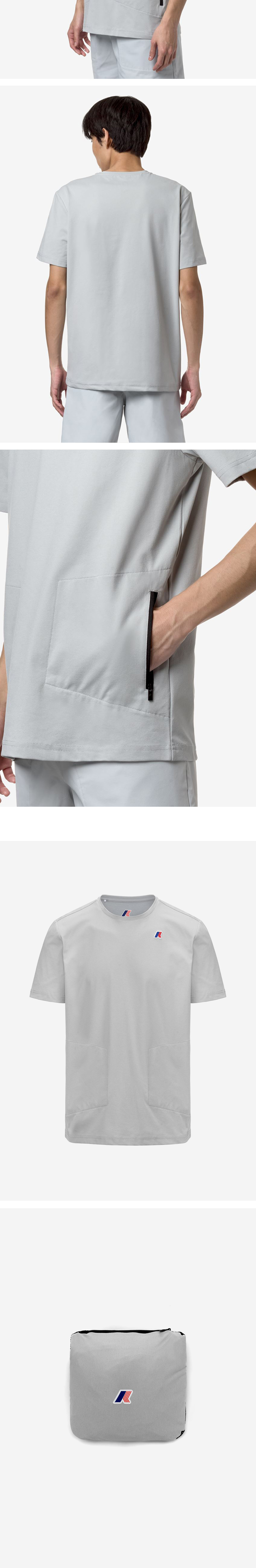 여행 가방에 간편하게 넣고 다니기 좋은 트래블 컨셉의 티셔츠 구김이 적은 폴리에스터 소재 양쪽에 지퍼 포켓으로 넉넉한 수납 공간 패커블 기능으로 휴대 용이 레귤러핏