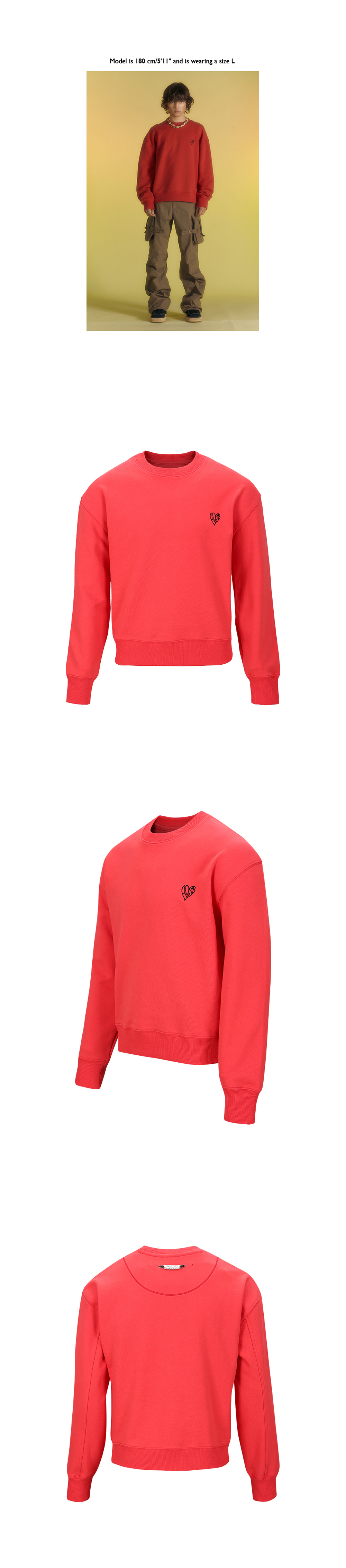 ADSB 앤더슨벨 에센셜 유니섹스 ADSB 하트 스웨트셔츠 레드