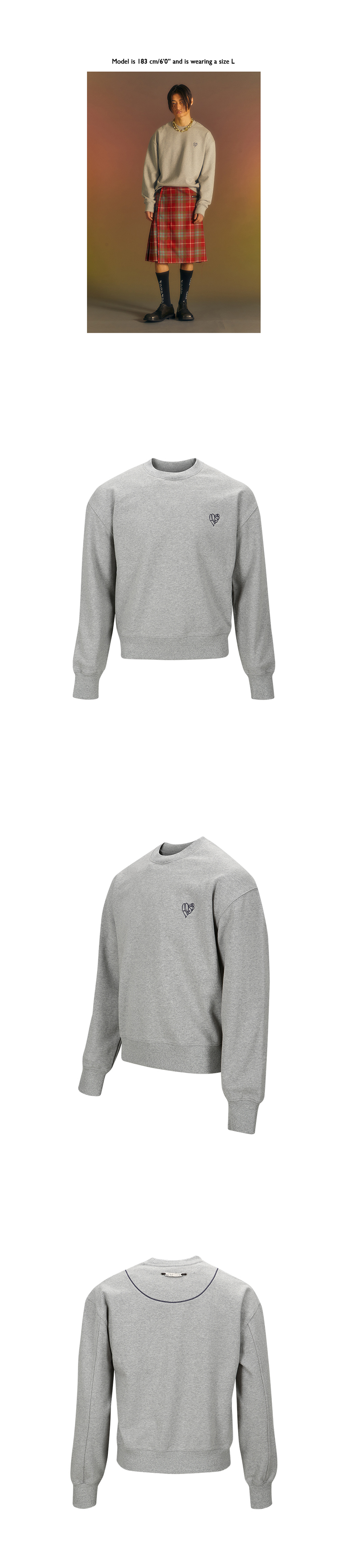 ADSB 앤더슨벨 에센셜 유니섹스 ADSB 하트 스웨트셔츠 그레이