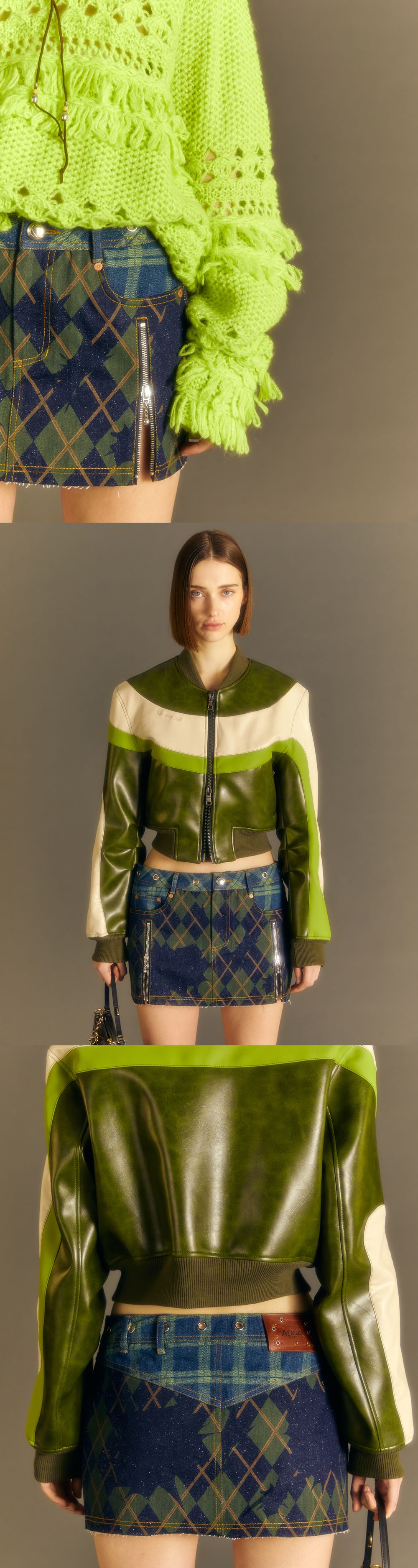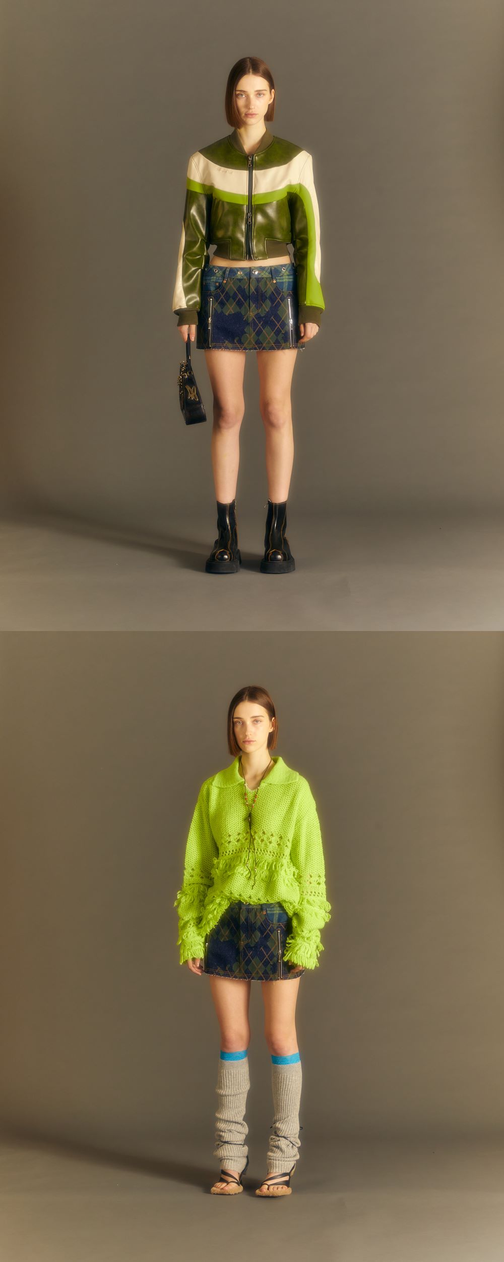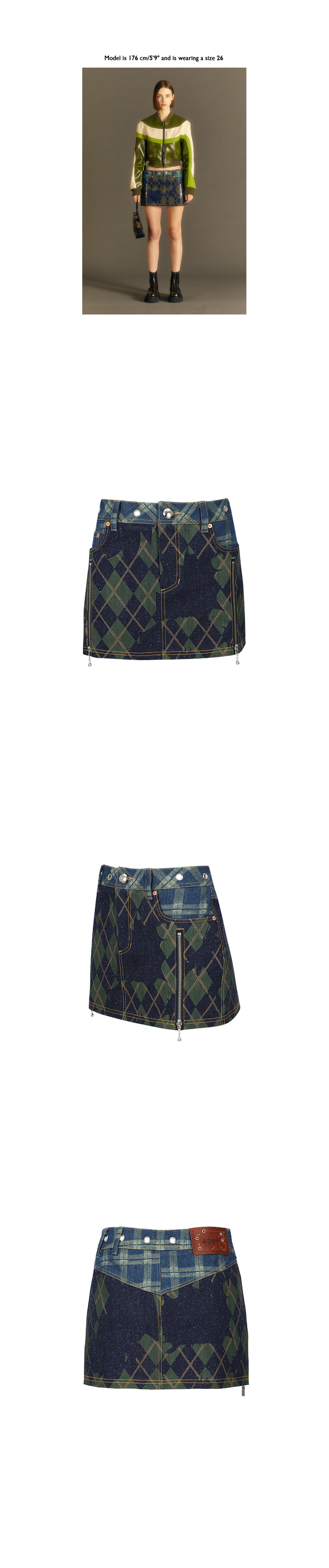 ADSB 앤더슨벨 우먼 키키 브로큰 아가일 데님 스커트 블루