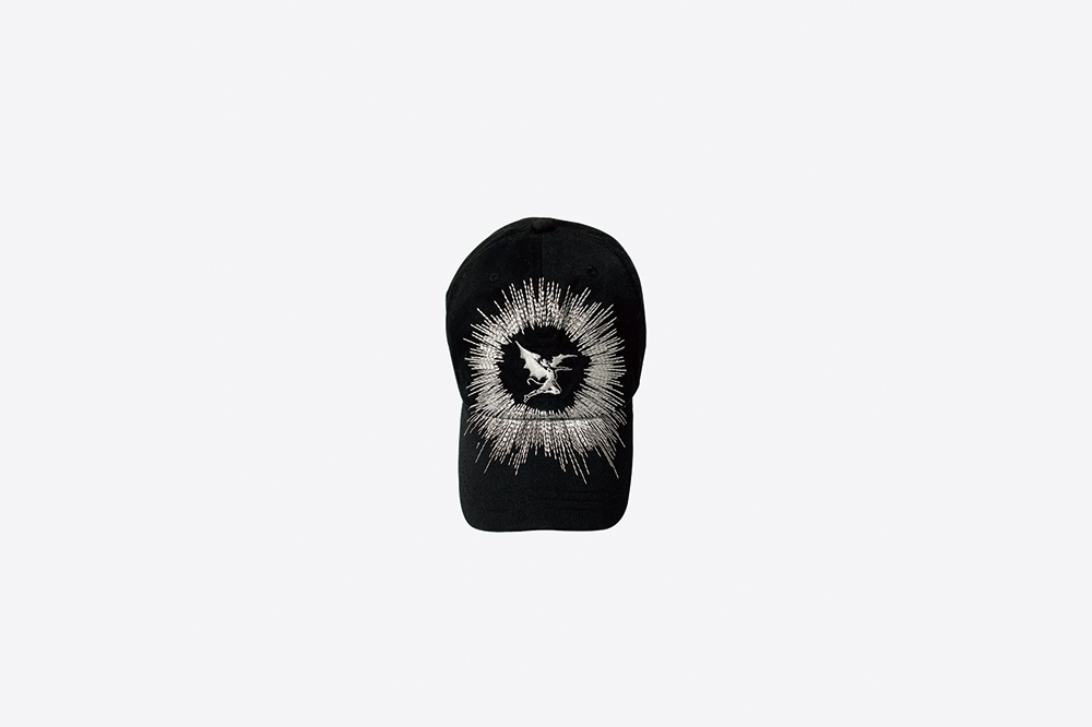 Vintage bio washed canvas cotton cap in black. Graphic embroidered at front and back. Size adjustment strap with metal hardware. Cotton 100%
