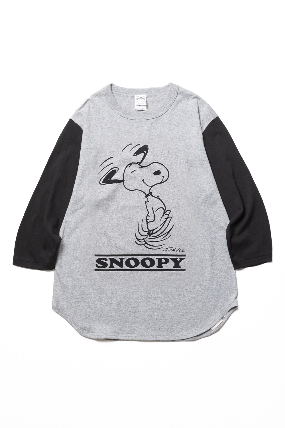 Houston Japan 22185 PEANUTS Baseball Tee (Snoopy) - Heater Gray 'Houston Japan'에서 전개하는 오리지널 시리즈인 'PEANUTS 콜라보레이션' 아이템 입니다. 6.5oz 원단을 사용하여 제작된 빈티지한 디자인의 3/4 슬리브 베이스볼 티셔츠입니다. 프론트에는 스누피가, 후면부에는 하드커버 타이틀이 프린트되어 있습니다.