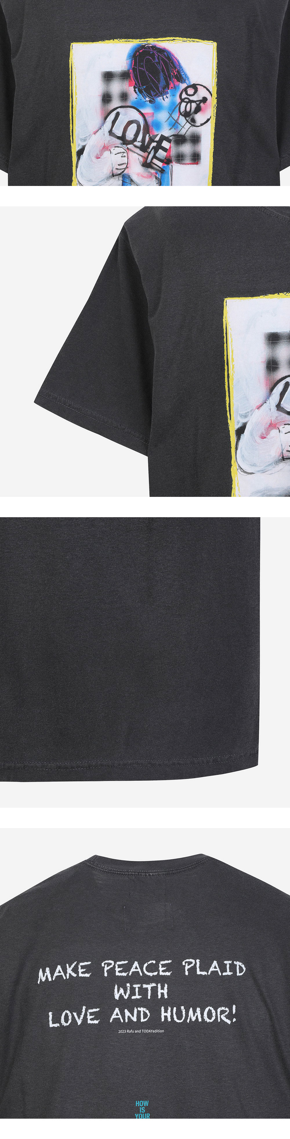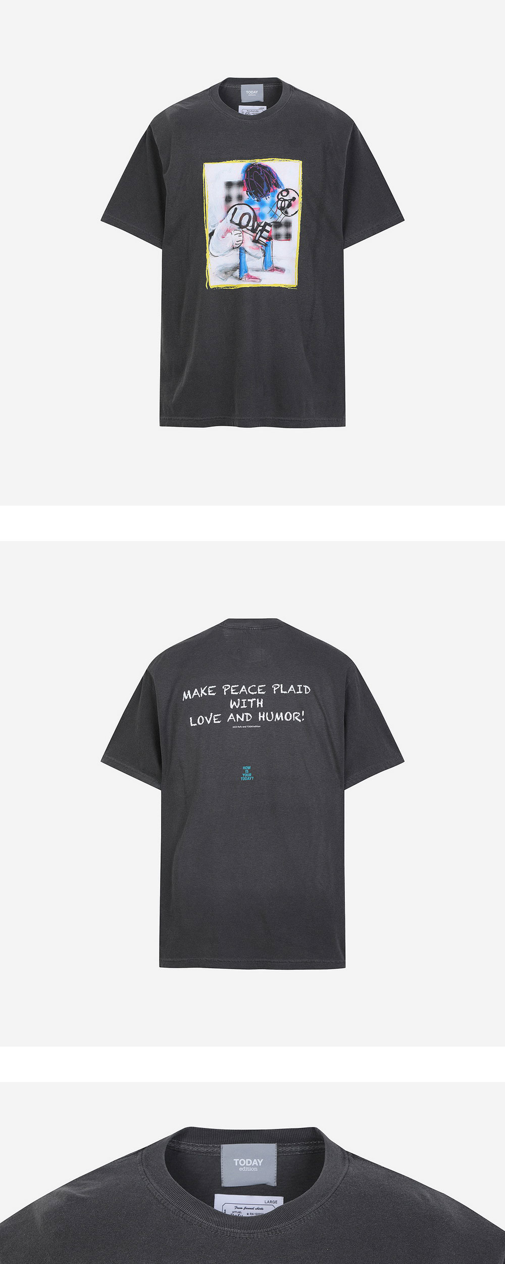 Rafu의 TODAY 에디션과 콜라보한 밴드 티셔츠입니다. 플란넬 셔츠를 입은 가상의 밴드를 이미지하여 디자인한 것이 특징입니다. 적당한 두께의 면 100% 원단으로 제작되어 편안한 착용감을 선사합니다.