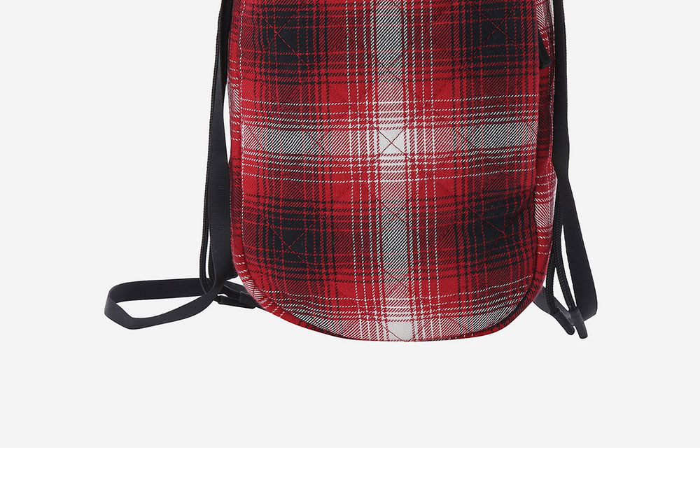 체크 패턴의 매력이 돋보이는 Rafu의 백입니다. 끈으로 조임 조절이 가능해 편리함을 선사합니다.
