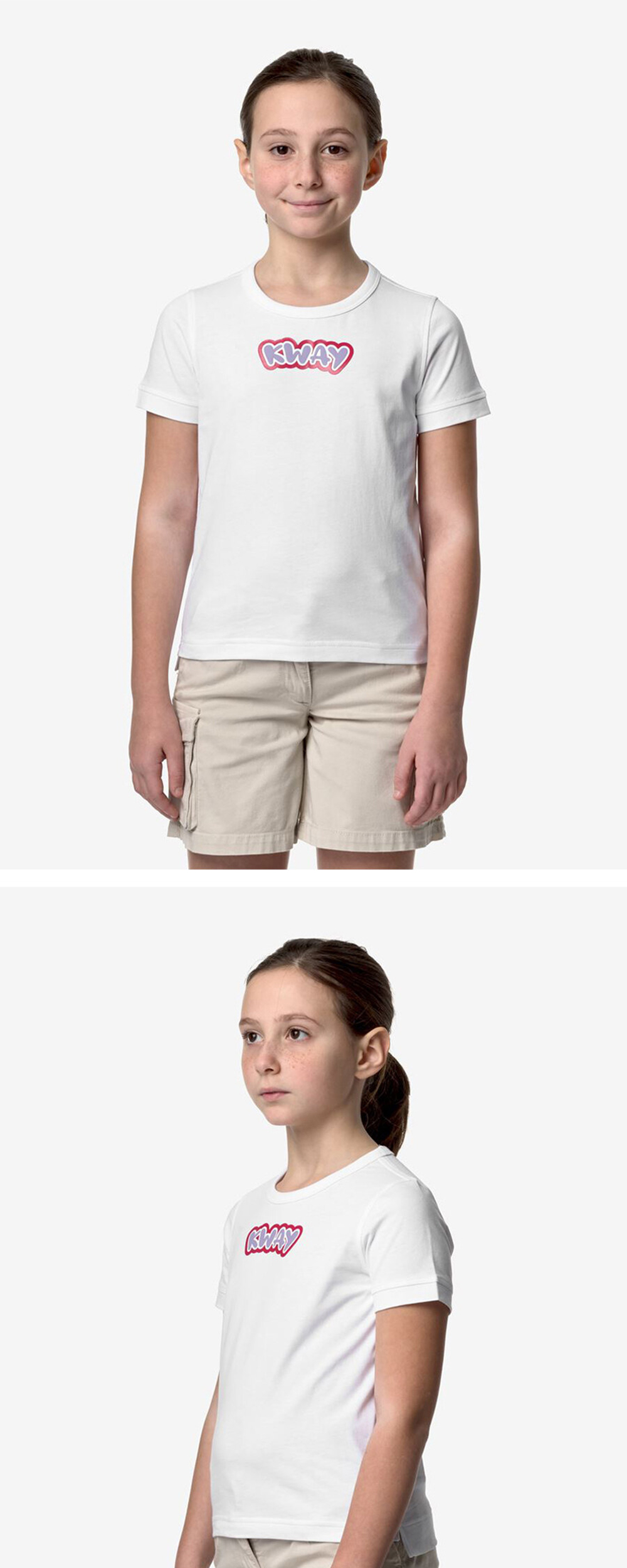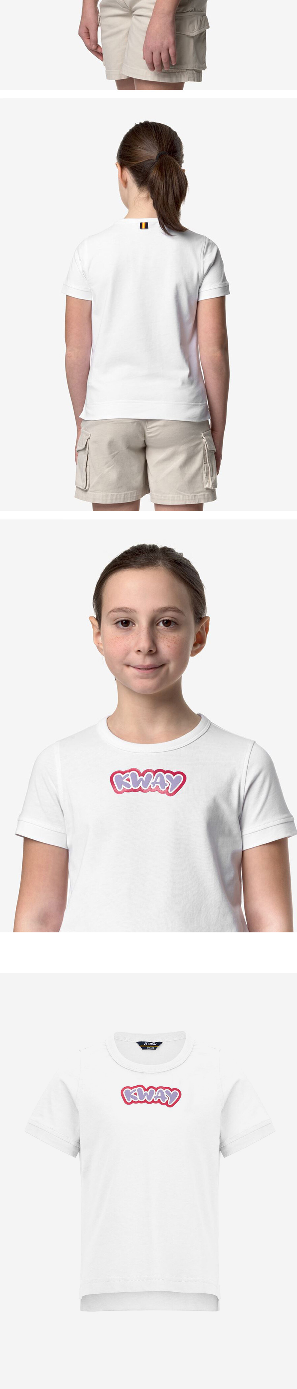 까웨 로고 그래픽이 돋보이는 여아용 반소매 티셔츠 목부분 립원단으로 편안한 탈착 가능 레귤러핏