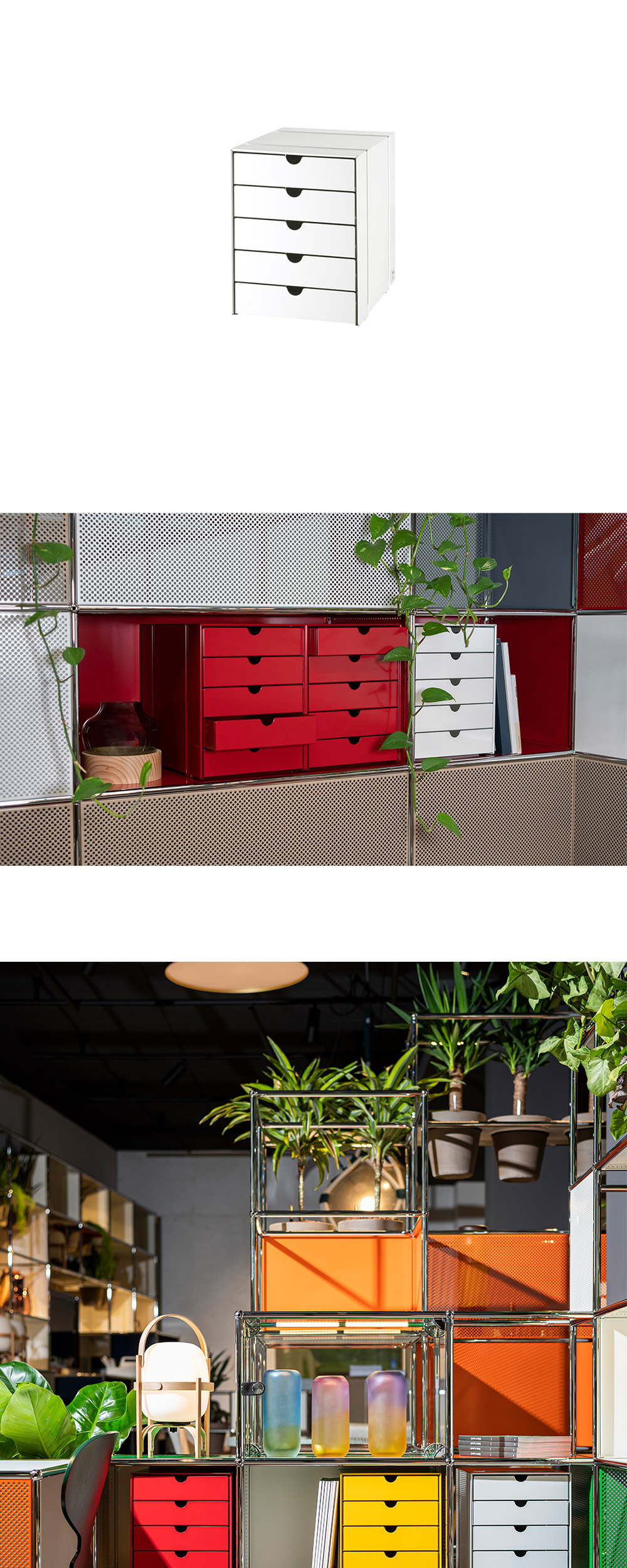 USM 스토리지의 수납을 보다 효율적으로 도와주는 이노스 박스입니다. USM과 동일한 스틸 소재를 사용해 만든 이노스 박스는 서류를 비롯해 각종 문구류와 중요한 물품을 손쉽게 찾아쓰고, 깔끔하게 정리할 수 있도록 다양한 사이즈의 트레이 옵션으로 구성되어 있습니다.