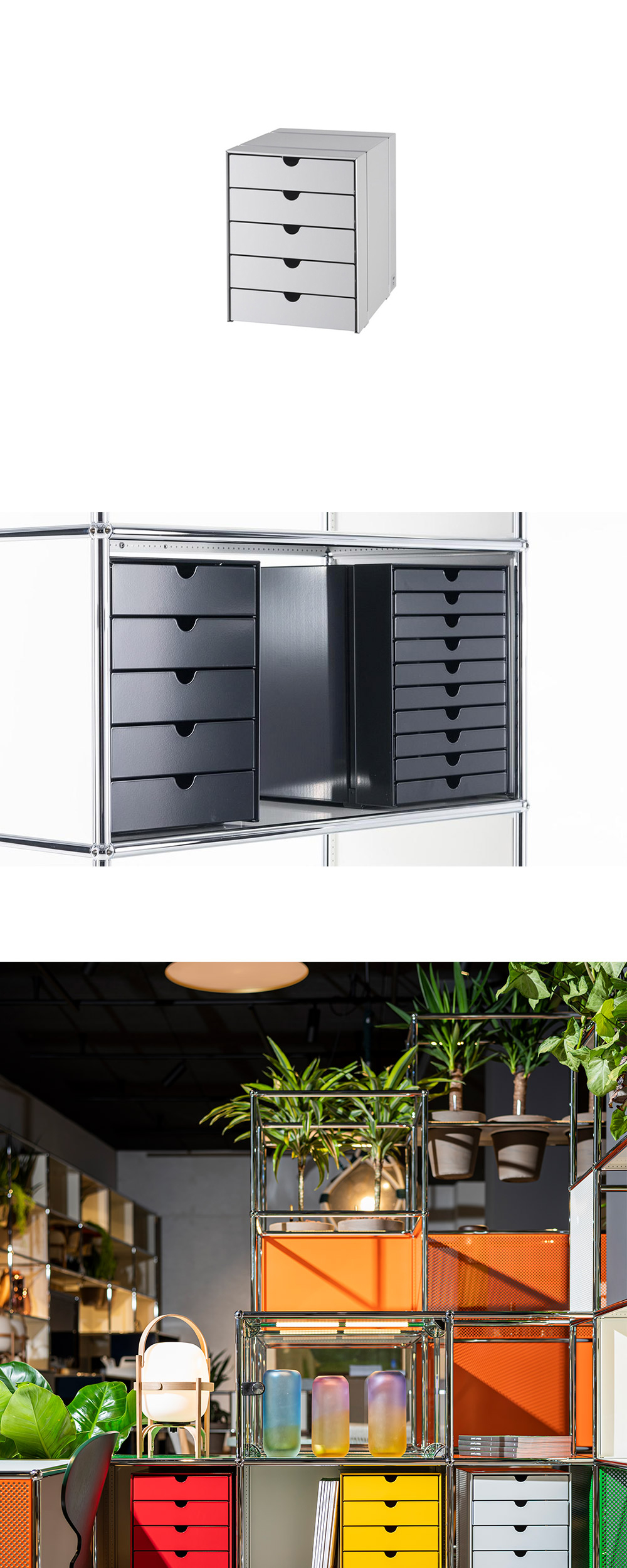 USM 스토리지의 수납을 보다 효율적으로 도와주는 이노스 박스입니다. USM과 동일한 스틸 소재를 사용해 만든 이노스 박스는 서류를 비롯해 각종 문구류와 중요한 물품을 손쉽게 찾아쓰고, 깔끔하게 정리할 수 있도록 다양한 사이즈의 트레이 옵션으로 구성되어 있습니다.