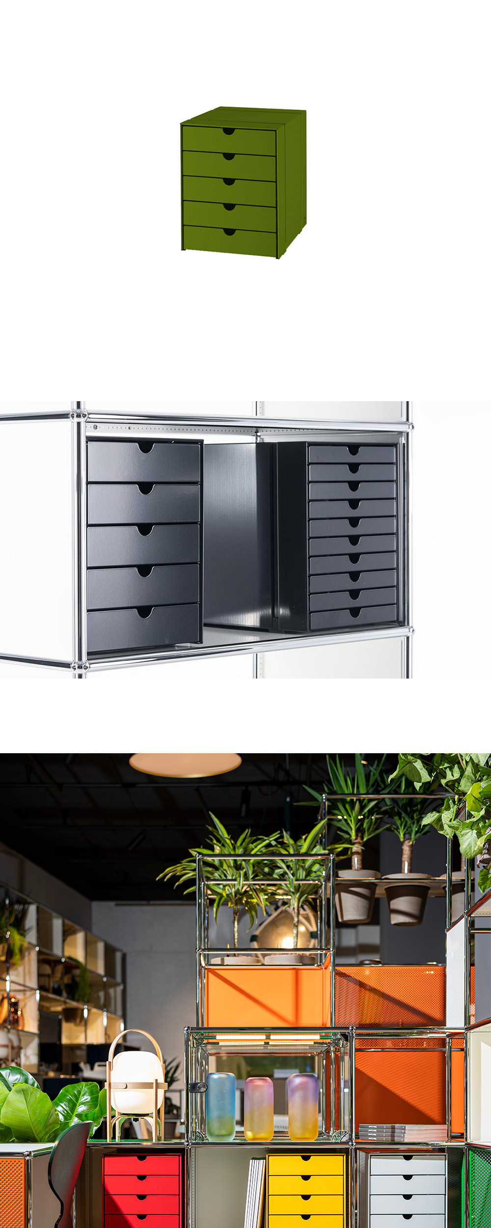 USM Inos Box Set C4 with 5 Closed Trays Olive Green