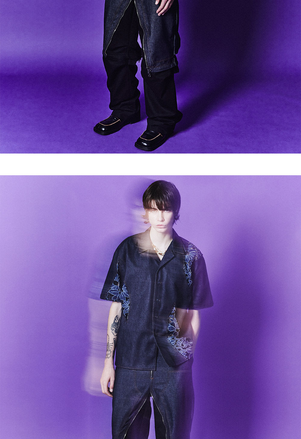 [KREAM 단독] ADSB 앤더슨벨 패치워크 오픈 칼라 셔츠 데님