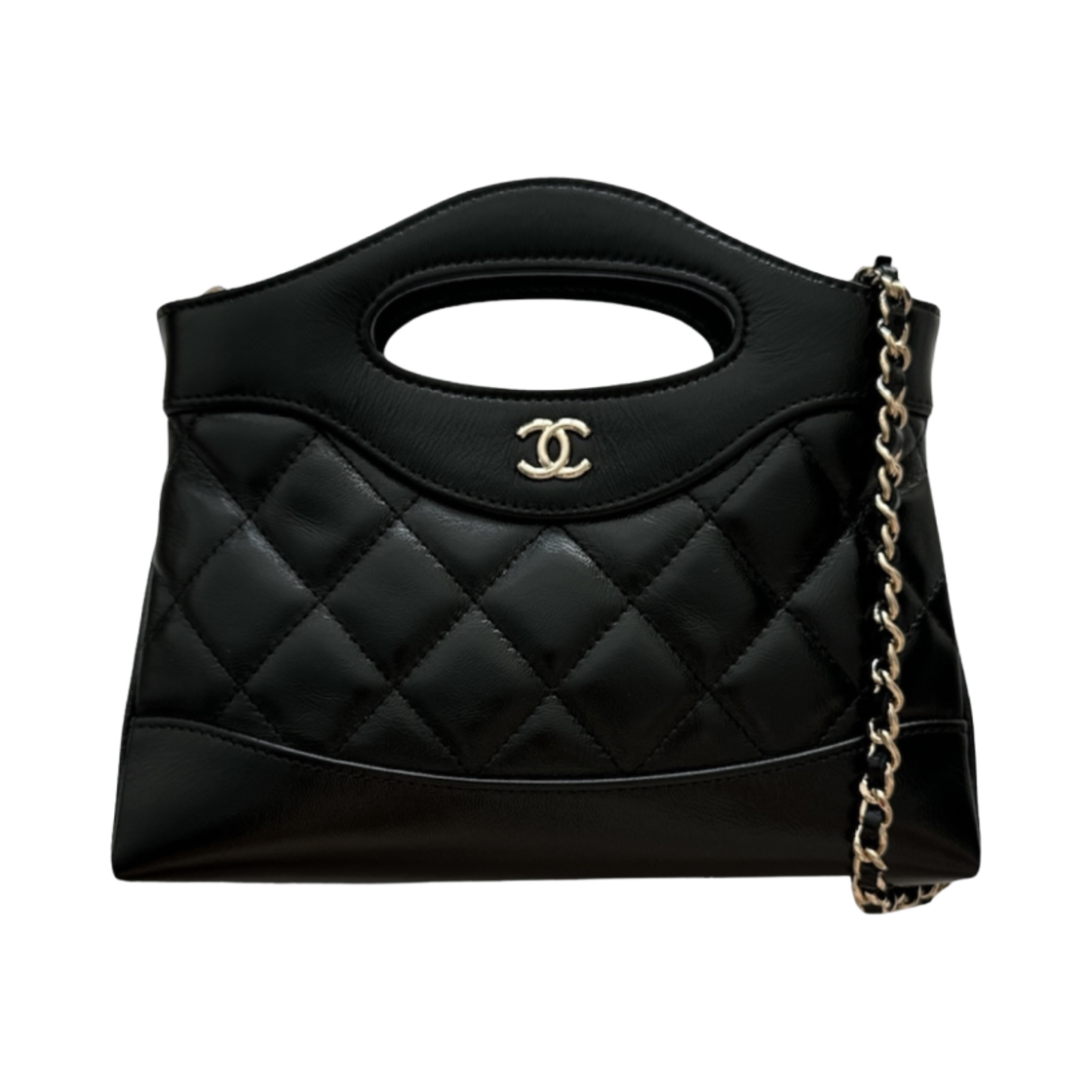 Chanel 31 Nano Gold CC Logo Chain Bag Shiny Lambskin & Gold Black