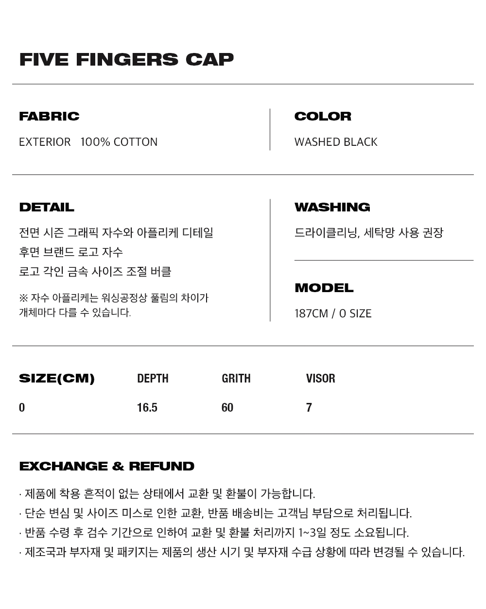 오프닝프로젝트 파이브 핑거스 캡 워시드 블랙