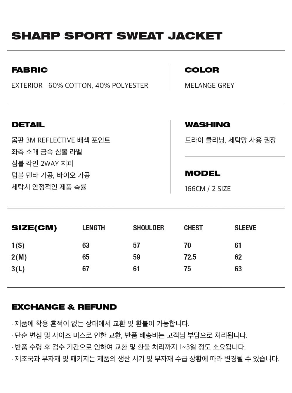 오프닝프로젝트 샤프 스포츠 스웨트 자켓 멜란지 그레이