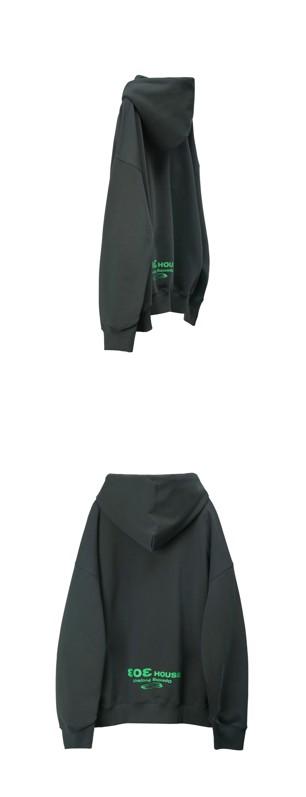 오프닝프로젝트 심볼 로고 지퍼 후디 차콜