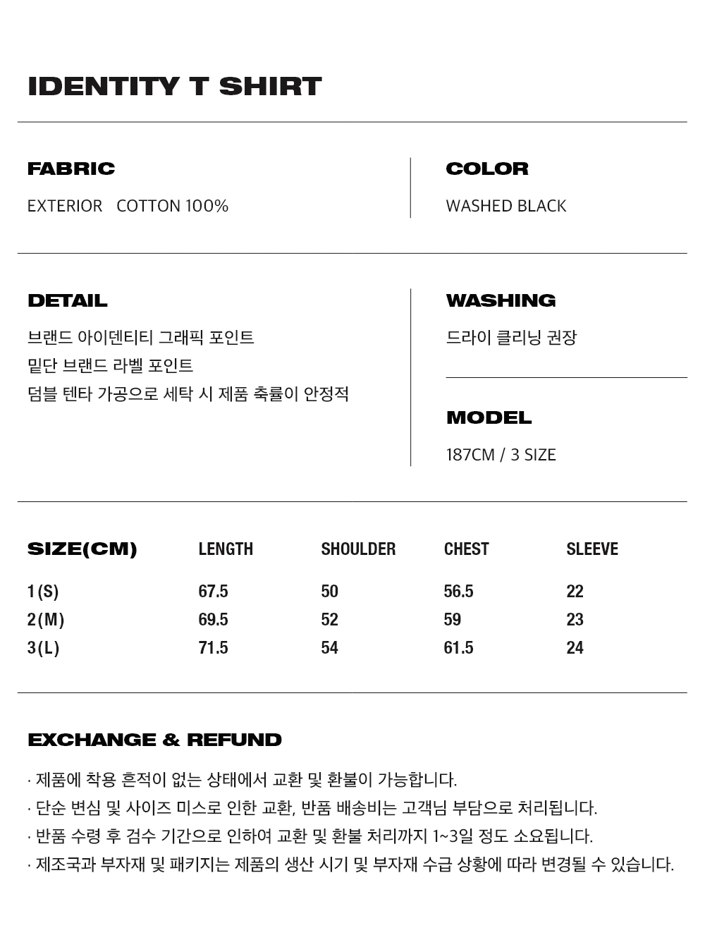 오프닝프로젝트 아이덴티티 티셔츠 워시드 블랙
