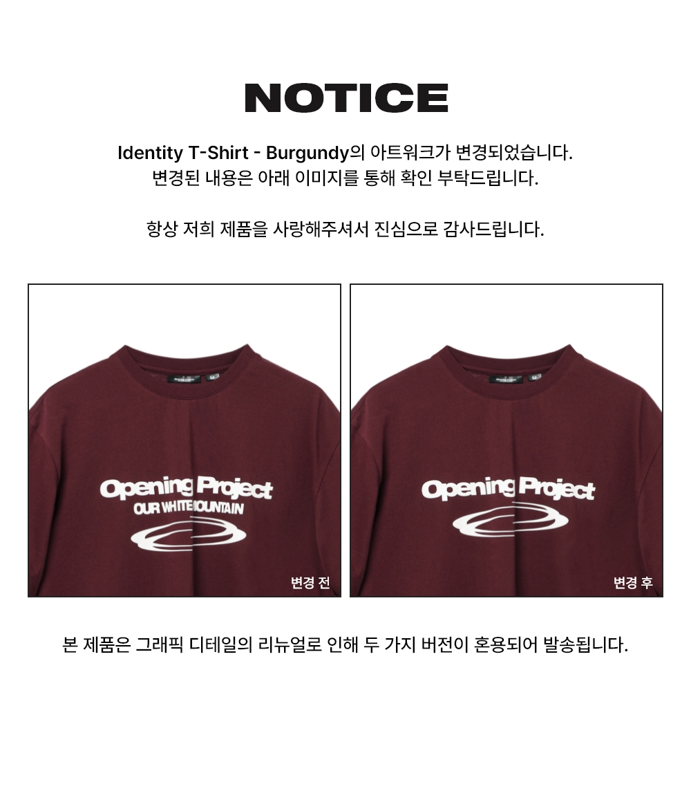 오프닝프로젝트 아이덴티티 티셔츠 버건디