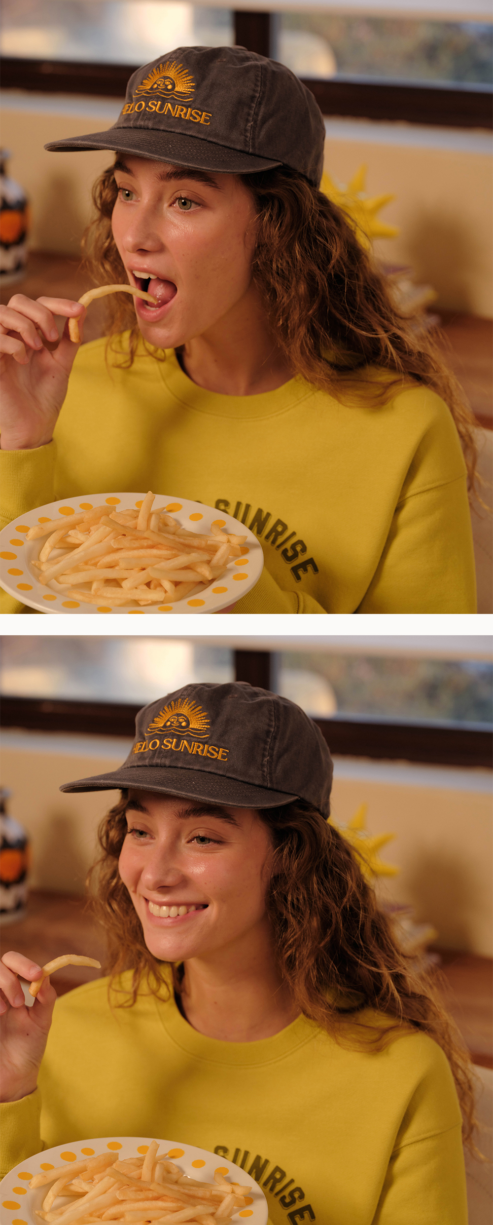 헬로선라이즈 워시드 오지 로고 6패널 캡 그레이