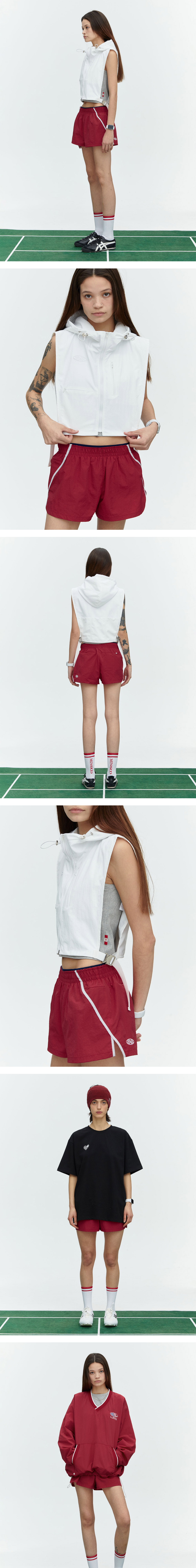 미나수 러닝 트랙 나일론 반바지 레드
