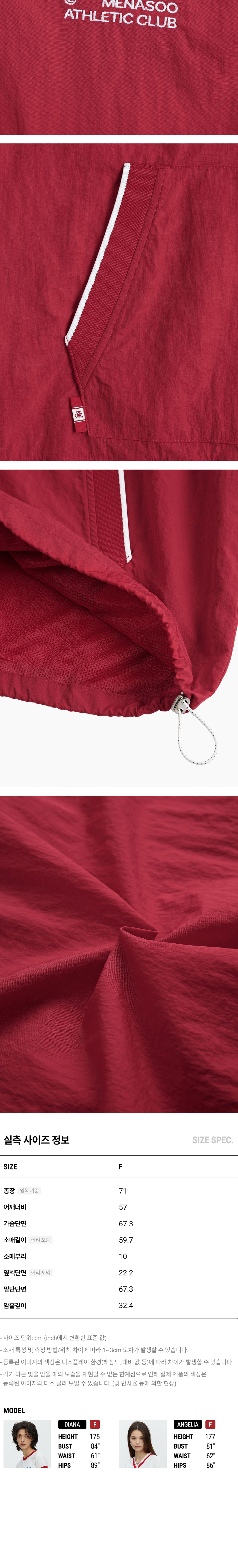 미나수 하트트랙 브이넥 나일론 아노락 자켓 레드