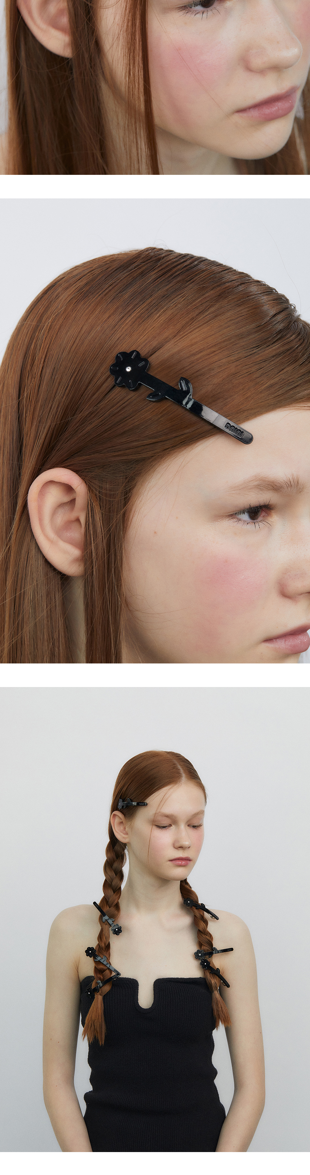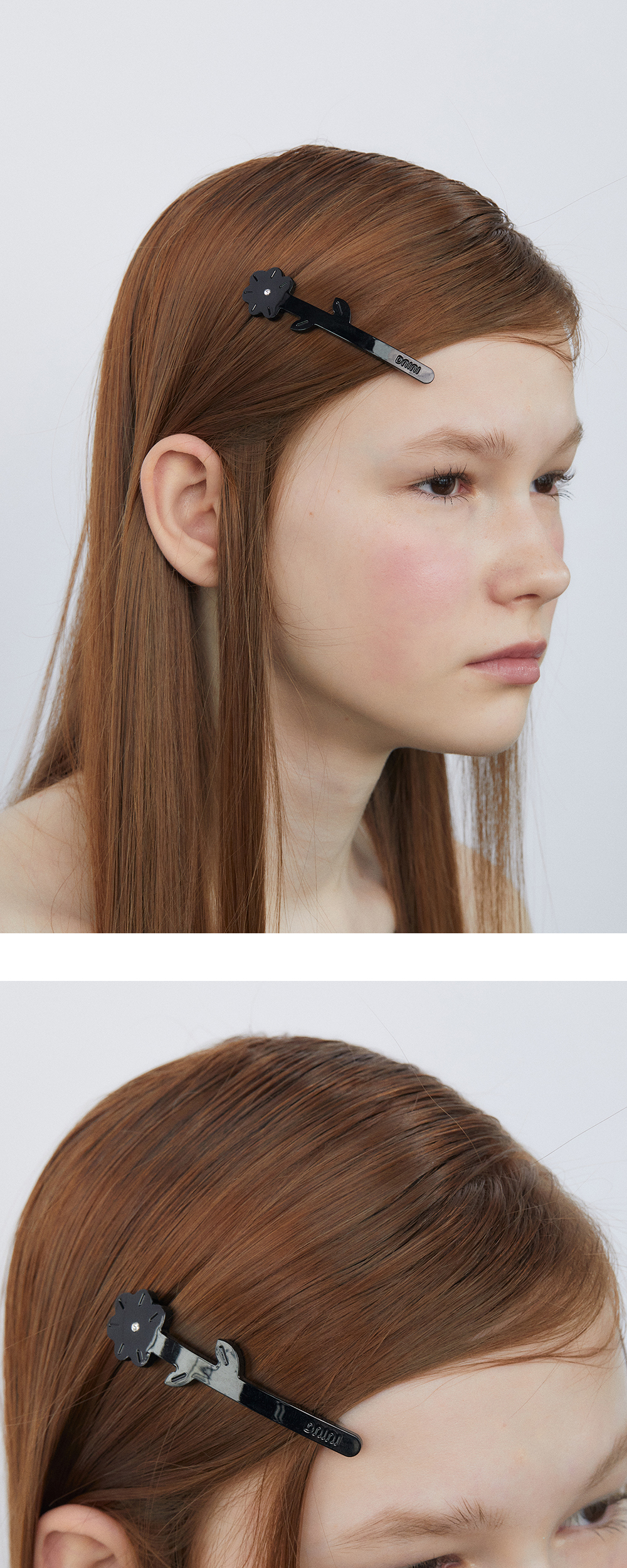 미니멀한 플라워라인의 헤어악세사리 미니멀한 DNINI로고 각인과 크리스탈 세팅