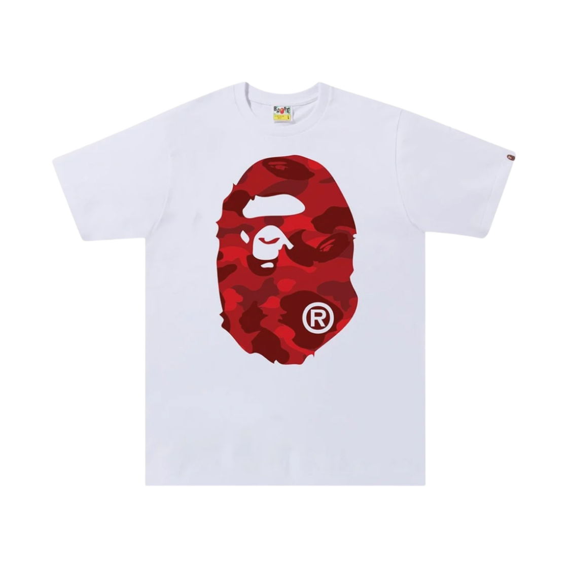 베이프 컬러 카모 빅 에이프 헤드 티셔츠 화이트 레드