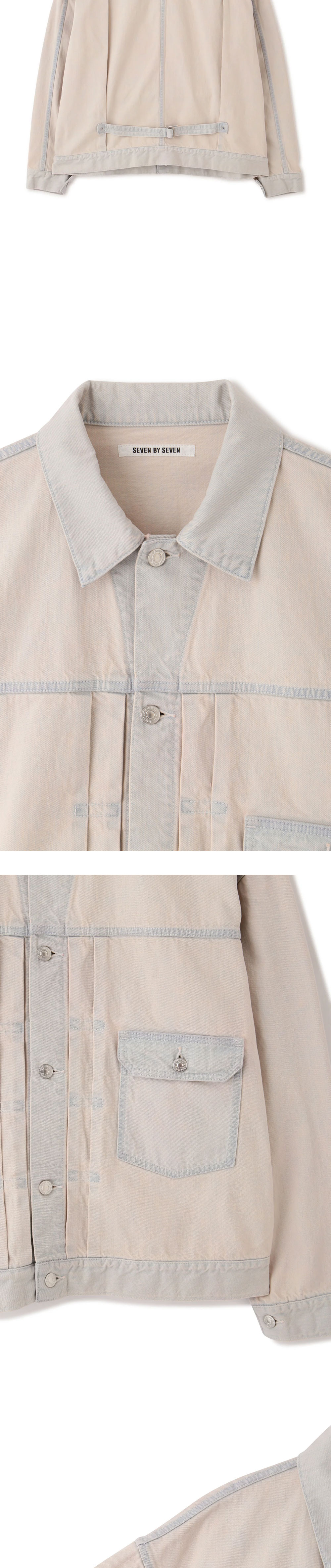 오버다이 가공을 거쳐 세븐바이세븐만의 감성이 돋보이는 퍼스트 타입 자켓입니다. 인디고 데님을 표백하여 일반적인 염료로 표현할 수 없는 독특한 색상을 표현한 것이 특징입니다. - 여유로우면서도 무게감을 갖추어 전체적인 밸런스를 맞춘 실루엣 * 상세 이미지의 상품의 경우 동일 상품의 핑크 컬러인 점 참고 부탁드립니다.