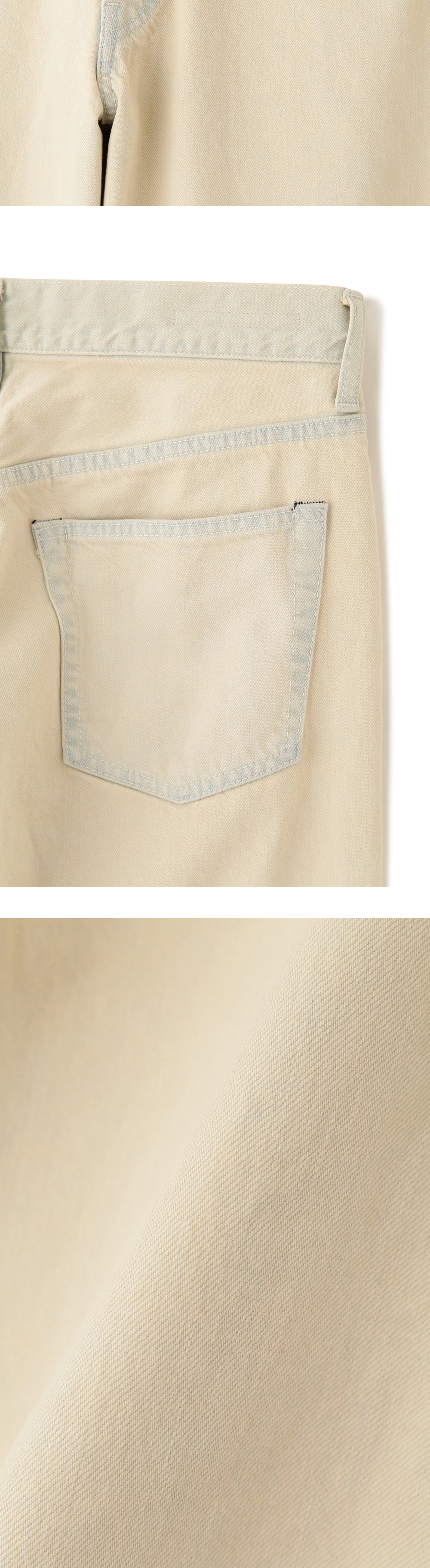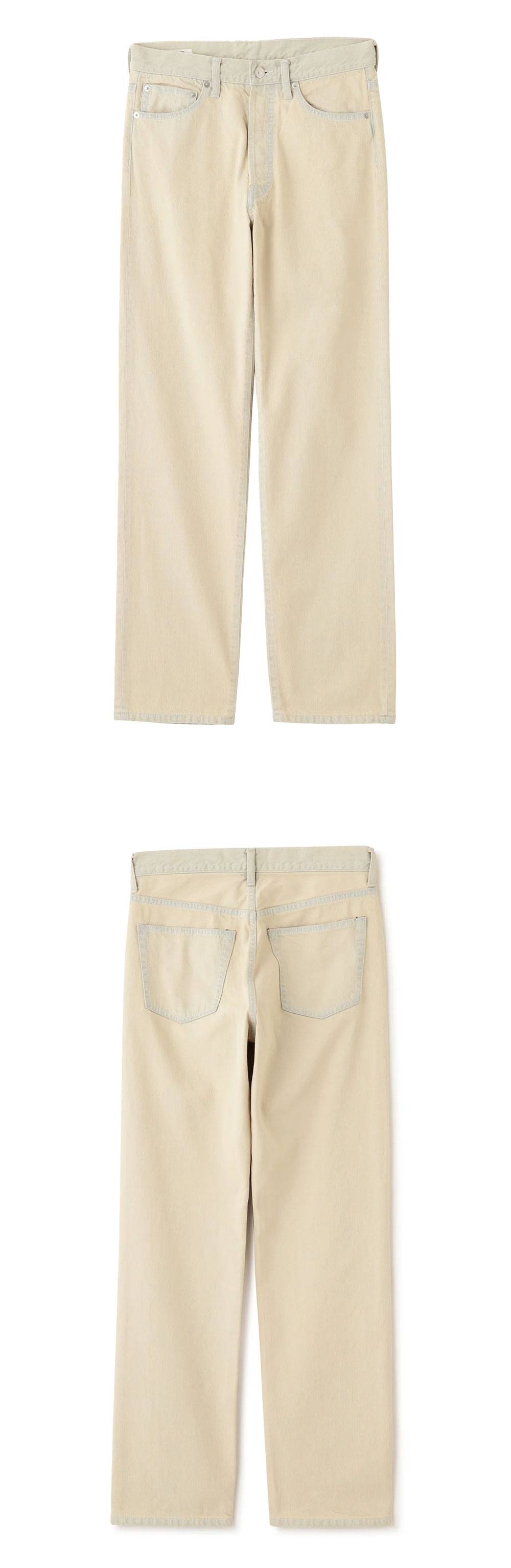 오버다이 가공을 거쳐 세븐바이세븐만의 감성이 돋보이는 스트레이트 진입니다. 인디고 데님을 표백하여 일반적인 염료로 표현할 수 없는 독특한 색상을 표현한 것이 특징입니다. - 여유가 있으면서도 전체적인 밸런스로 샤프함을 갖춘 실루엣
