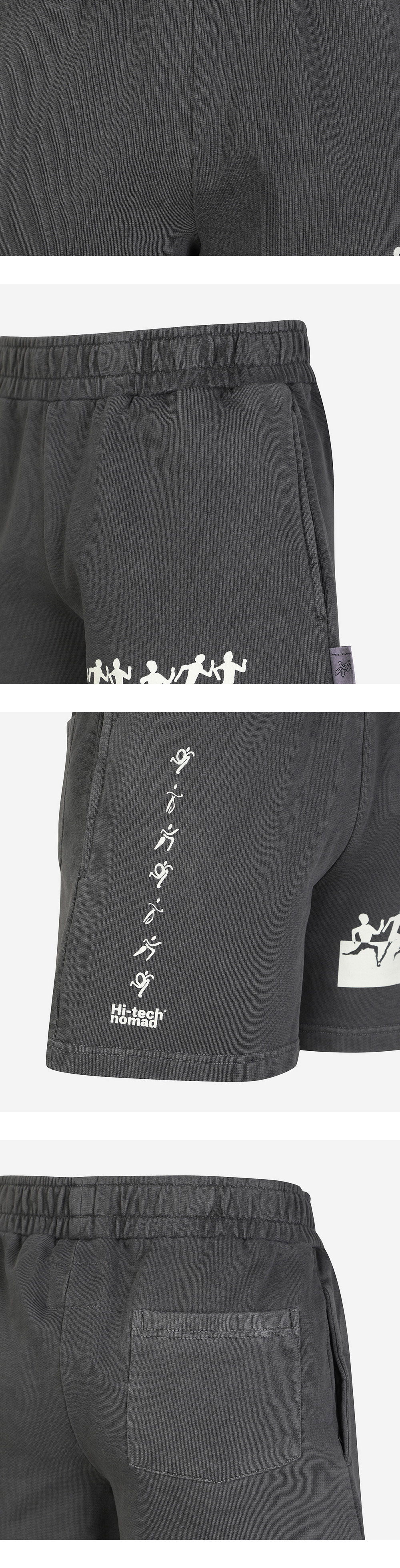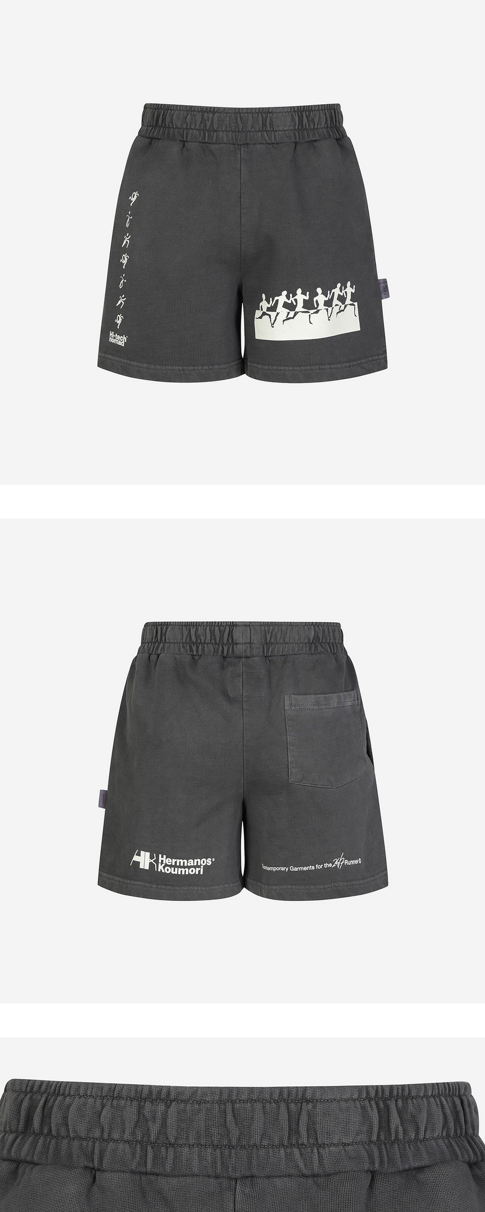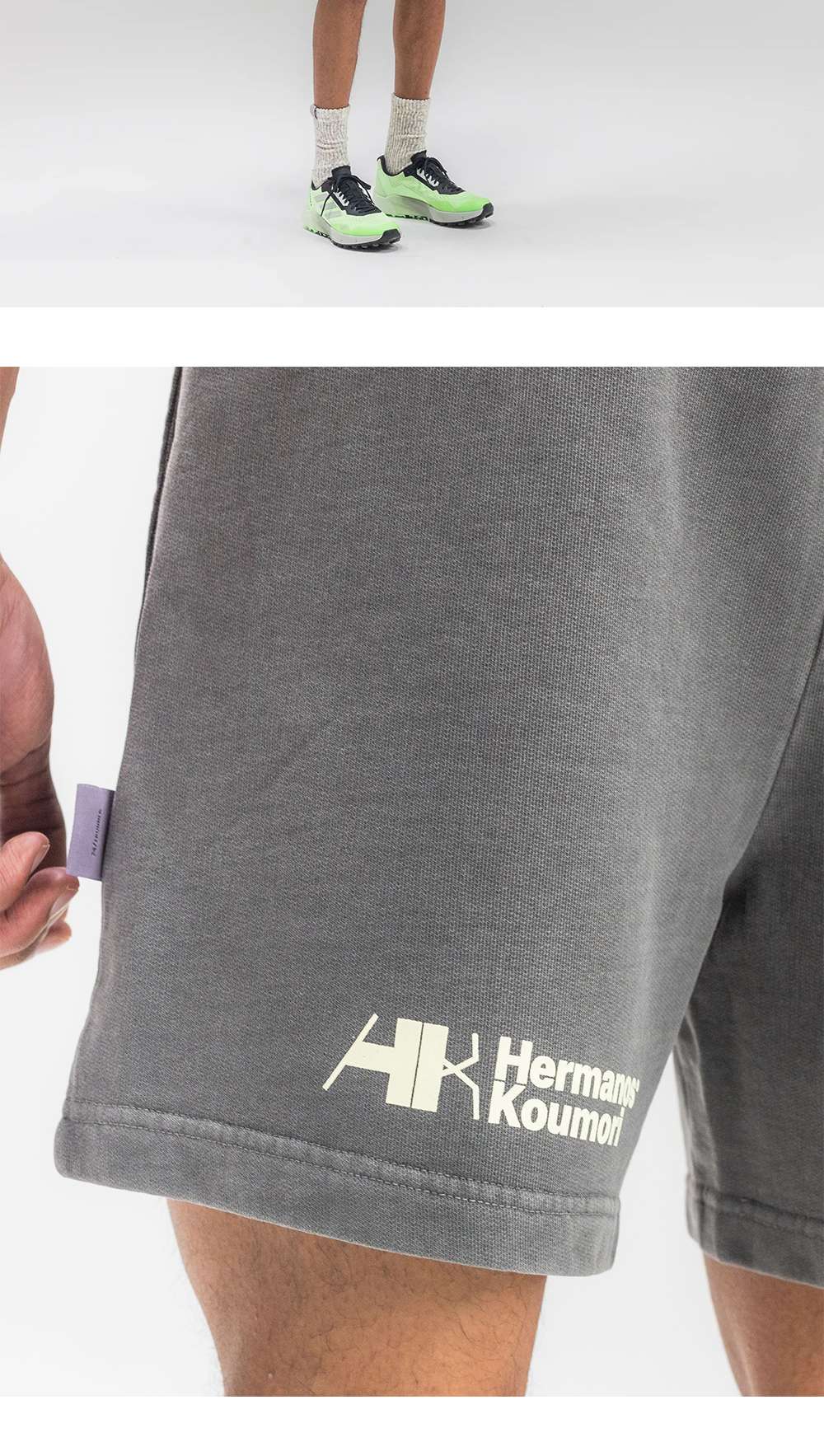 에르마노스 쿠모리의 워싱된 블랙 색상과 러너 그래픽이 특징인 쇼츠입니다. 하이테크 노마드 반바지로, 러닝이나 일상 활동에서 편안함을 유지할 수 있는 팬츠입니다. - 100% 코튼 프렌치 테리 - 레귤러 핏 - 스크린 프린팅 그래픽 - 신축성 있는 허리 *모델1, 2 신체 스펙 185cm / 착용 사이즈 L
