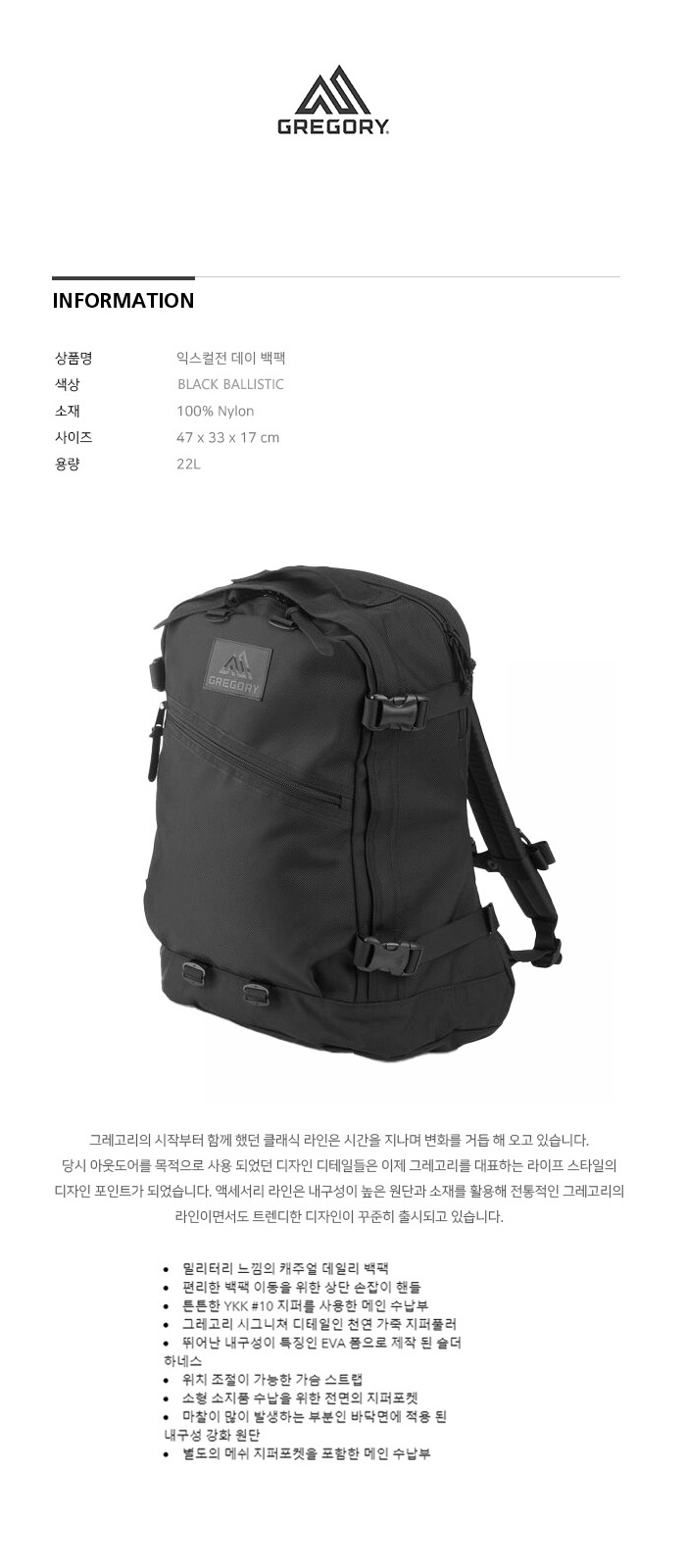 그레고리 익스컬전 데이 백팩 블랙 발리스틱