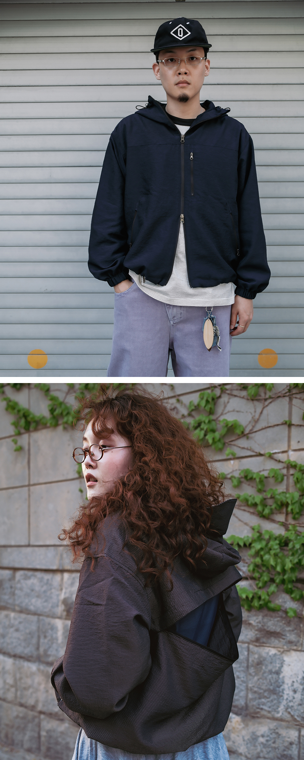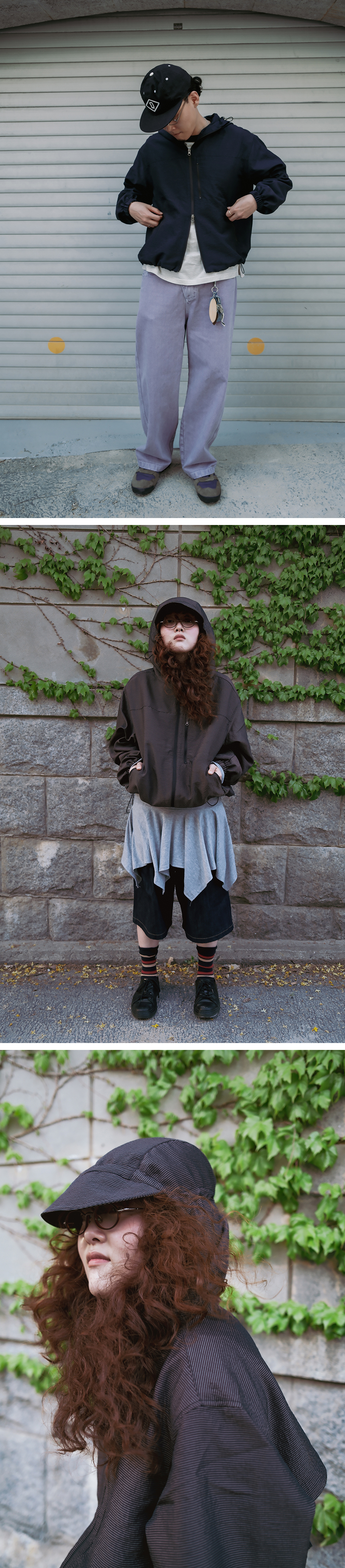 Product Info. - 레트로 무드의 핀 스트라이프 겉감, 메쉬 소재의 감각적인 배색 안감 - 얇고 가벼운 나일론 혼방 소재를 사용하여 간절기 및 여름철 높은 활용도의 윈드브레이커 자켓 - 전면 여밈 부 YKK 2-WAY 오픈 지퍼 디자인 - 전면부 2개의 YKK 지퍼 핸드포켓 / 1개의 가슴부 YKK 지퍼 포켓 디자인 - 후면 개방 가능한 YKK 지퍼 플랩 디테일 - 밑단 스트링 어드저스터 / 소맷단 밴딩 디테일 - 후드 전/후면 스트링 어드저스터 디테일