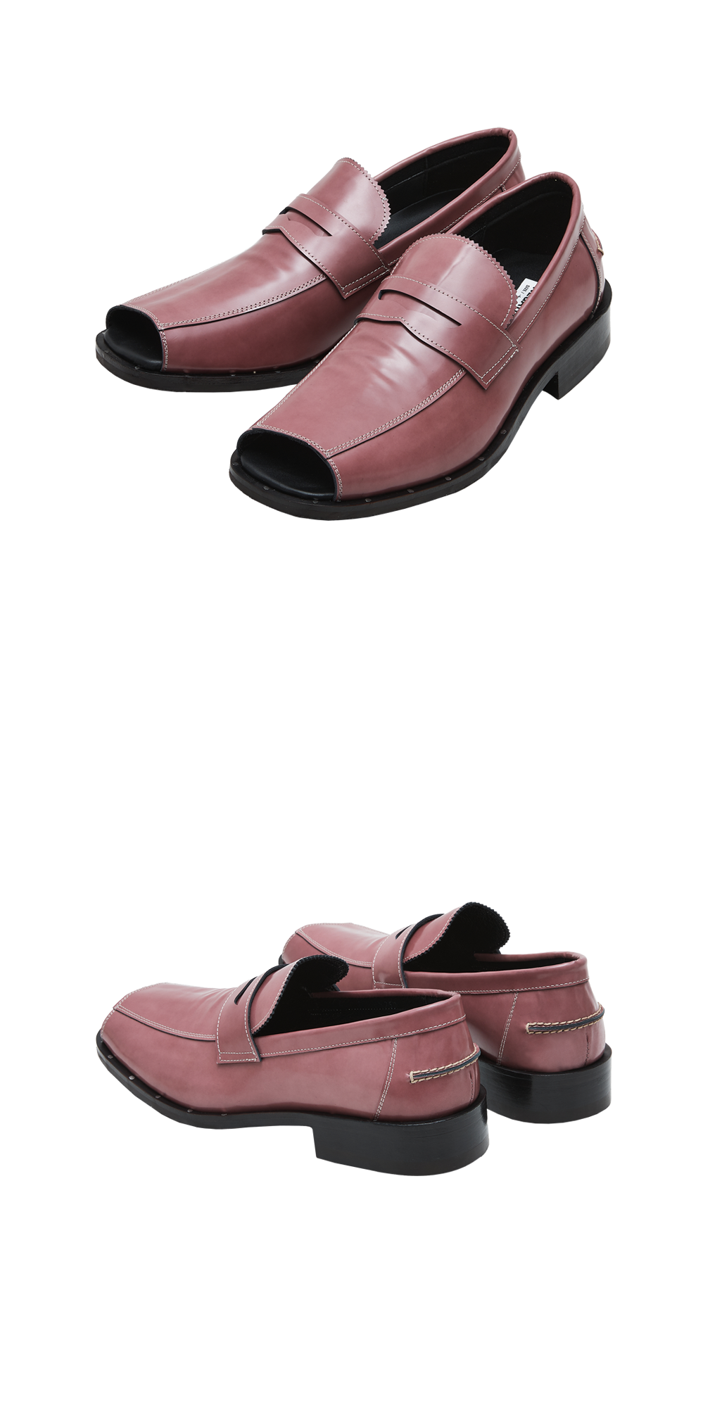 네거티브쓰리 스퀘어 토 컷팅 로퍼 더스티 핑크