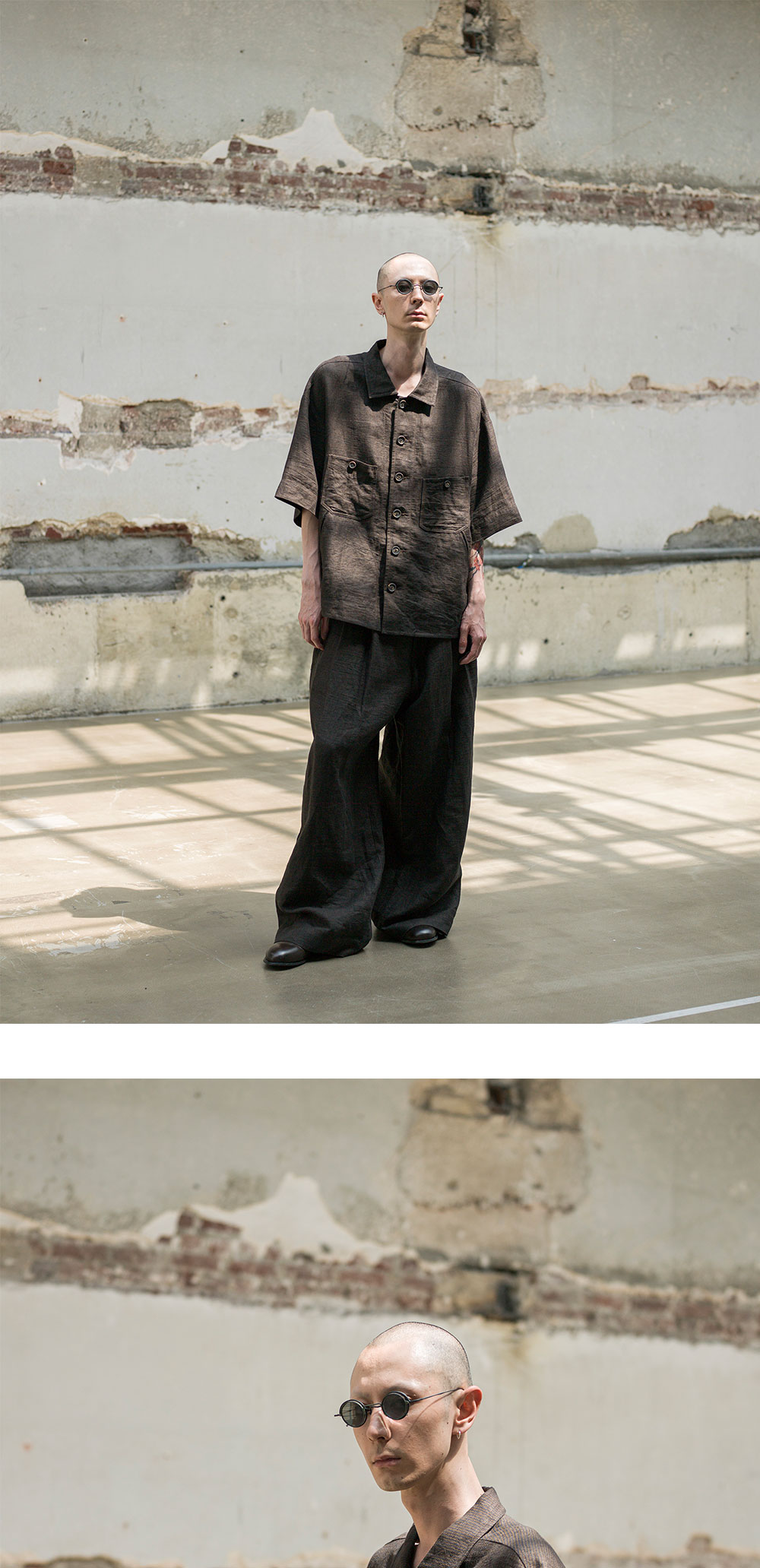 지기첸 오버사이즈 숏슬리브 워커 셔츠 브라운