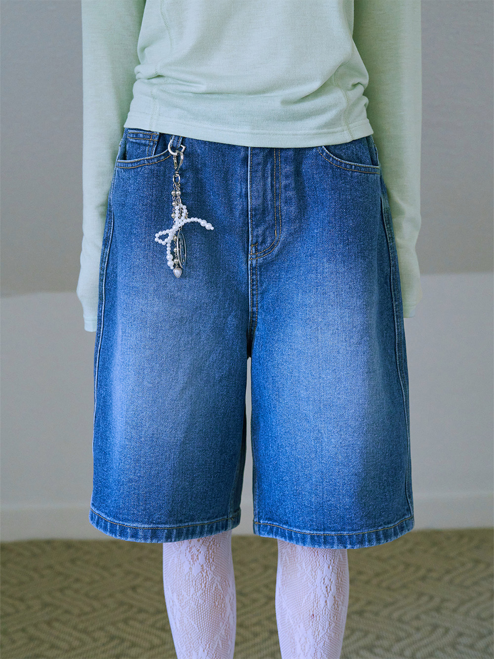 에프에이디 데님 하프 팬츠 미드블루