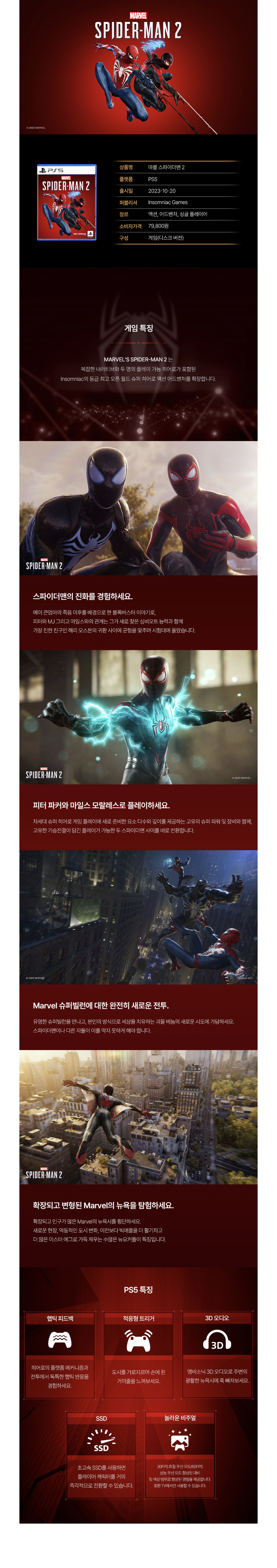 플레이스테이션 5 마블 스파이더맨 2 스탠다드 에디션