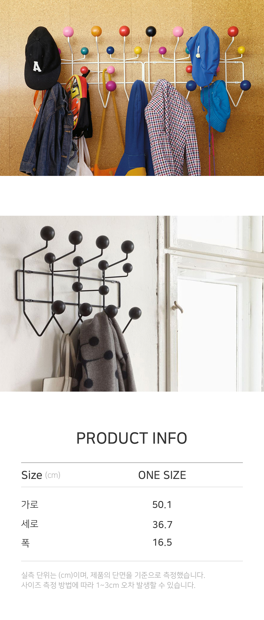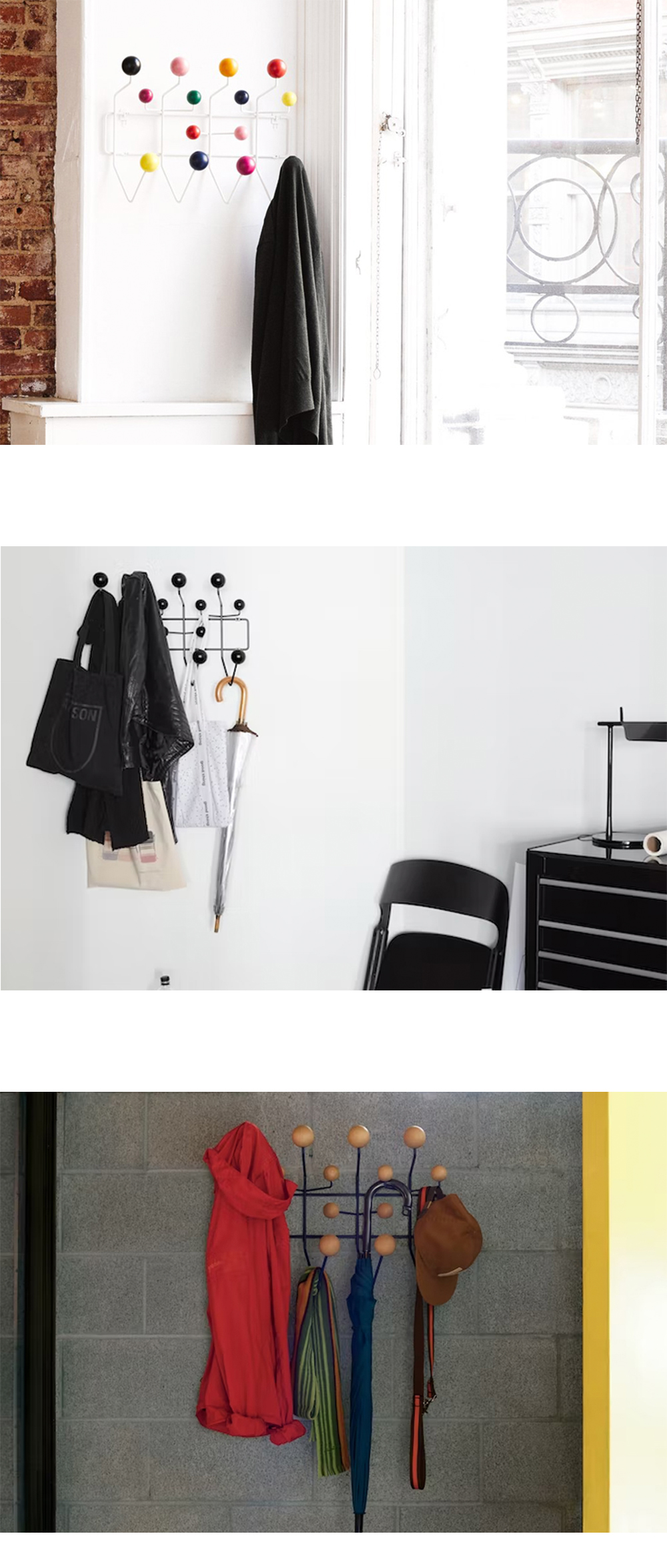 1953년 찰스&레이 임스 부부가 디자인한 행잇올은 이름 그대로 모든 것을 걸어놓도록 제작된 벽걸이형 옷걸이입니다. 기본 기능에 충실하면서도 매력적인 디자인으로, 처음에는 어린이들을 위해 디자인 되었으나 지금은 세대를 아우르며 사랑받는 아이템이 되었습니다. 공간의 분위기를 화사하게 바꿔주며 포인트를 주는 오브제로도 활용하기 좋습니다.