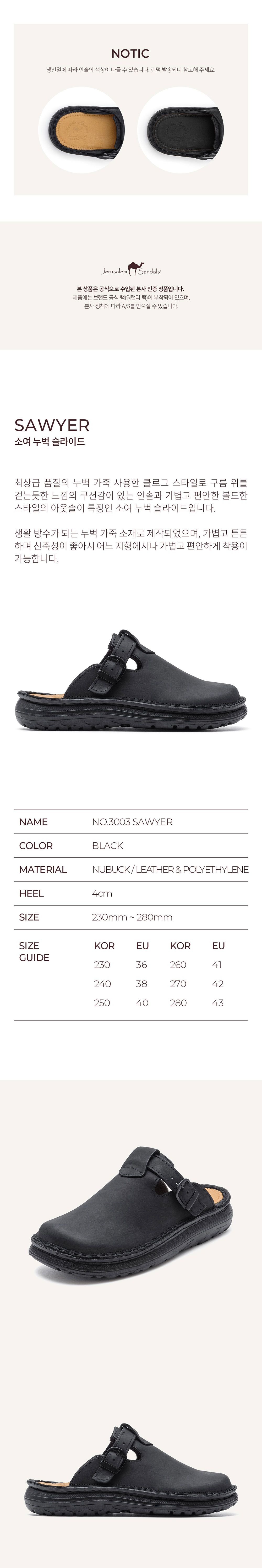 예루살렘 샌들 3003 소여 블랙