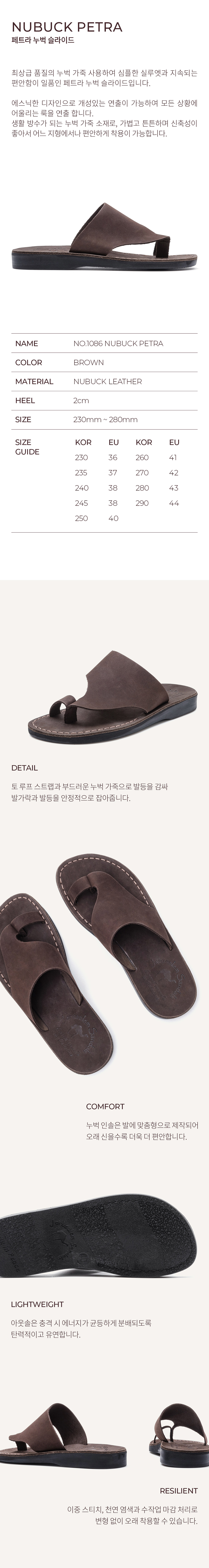 예루살렘 샌들 1086NN 페트라 슬라이드 누벅 브라운