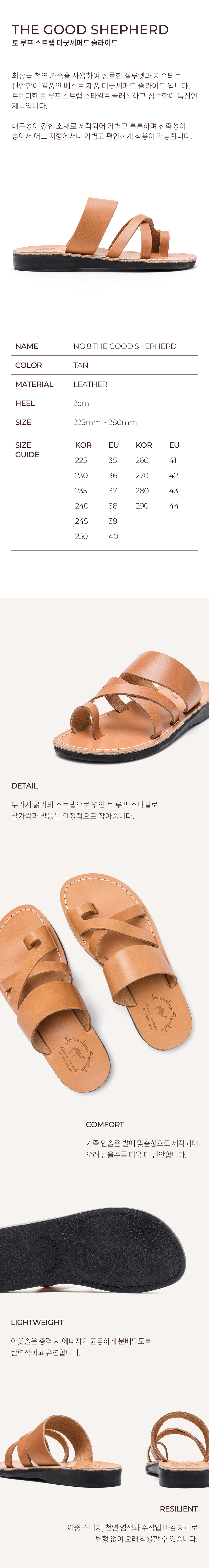 예루살렘 샌들 8 토 로푸 스트랩 더굿셰퍼드 슬라이드 탄
