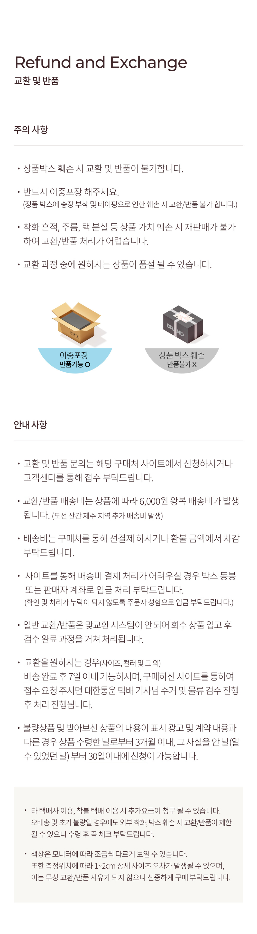교환 및 반품 안내