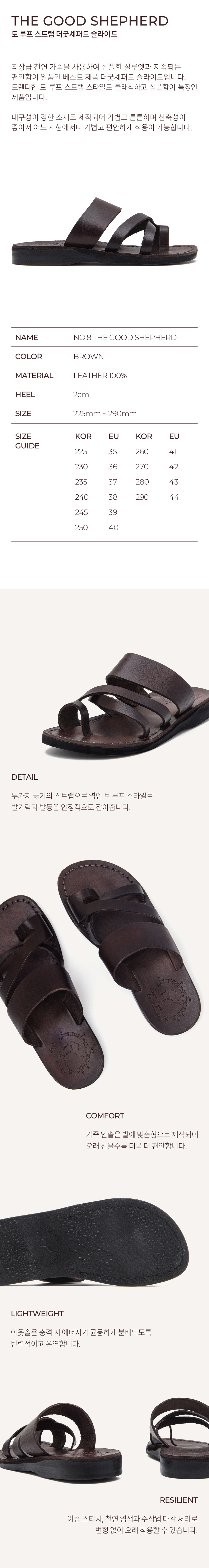 예루살렘 샌들 8 토 로푸 스트랩 더굿셰퍼드 슬라이드 브라운