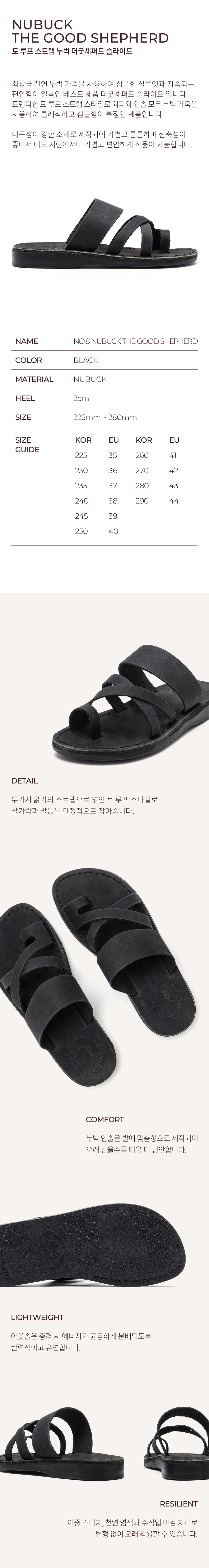 예루살렘 샌들 8 토 로푸 스트랩 더굿셰퍼드 슬라이드 누벅 블랙
