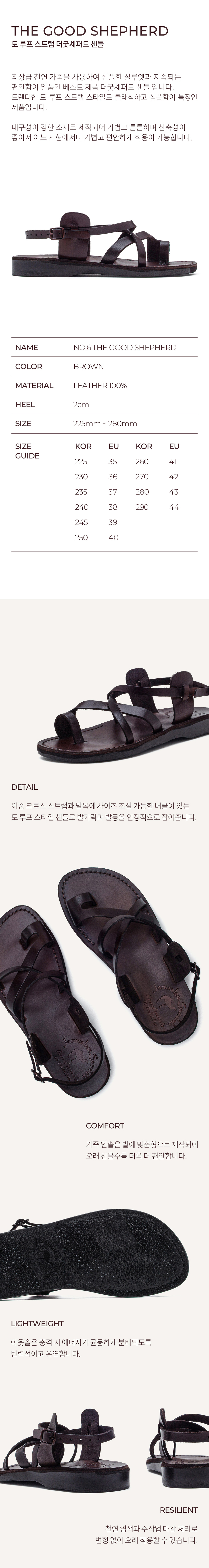 예루살렘 샌들 6 토 로푸 스트랩 더굿셰퍼드 샌들 브라운
