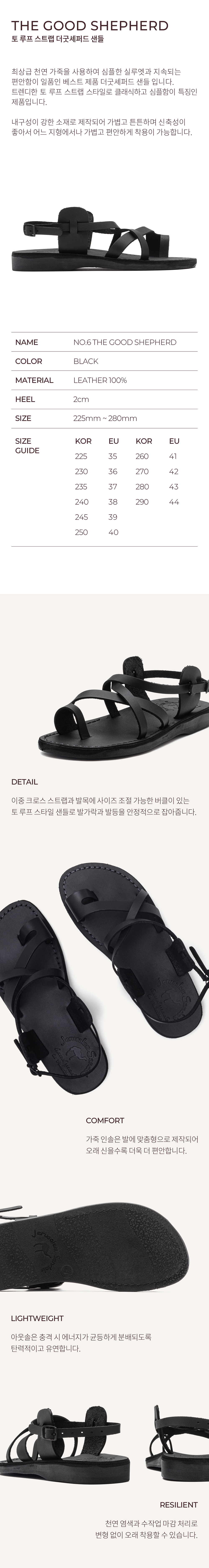 예루살렘 샌들 6 토 로푸 스트랩 더굿셰퍼드 샌들 블랙