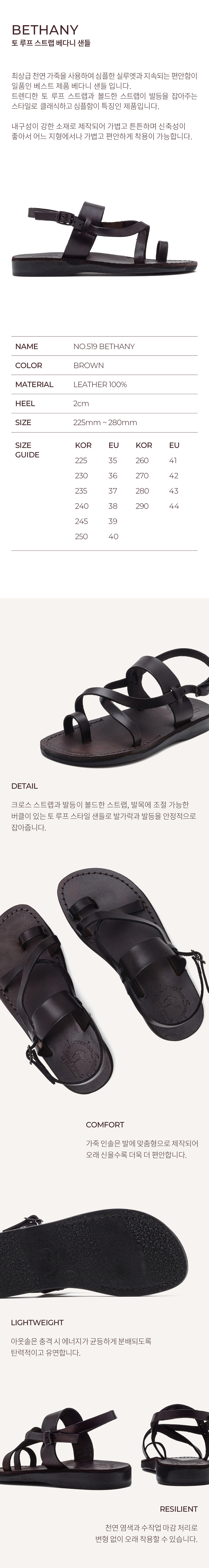 예루살렘 샌들 519 토 로프 스트랩 베다니 샌들 브라운