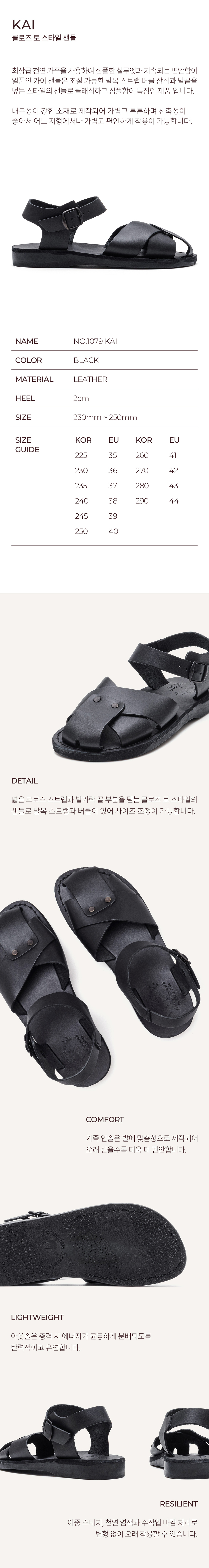 예루살렘 샌들 1079 클로즈 토 카이 샌들 블랙