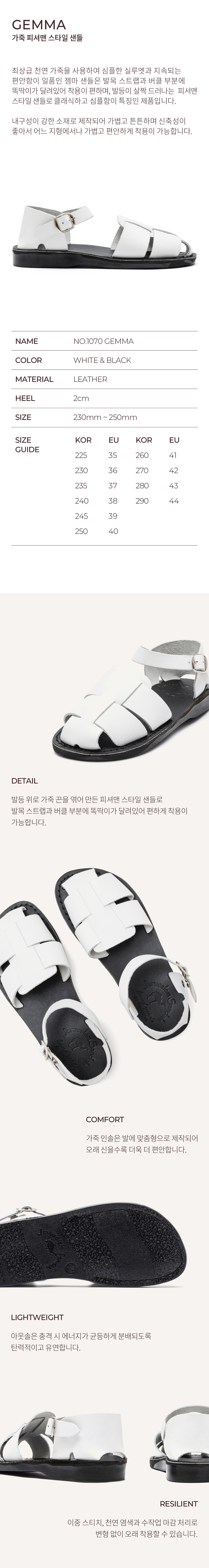 예루살렘 샌들 1070 젬마 샌들 블랙 화이트