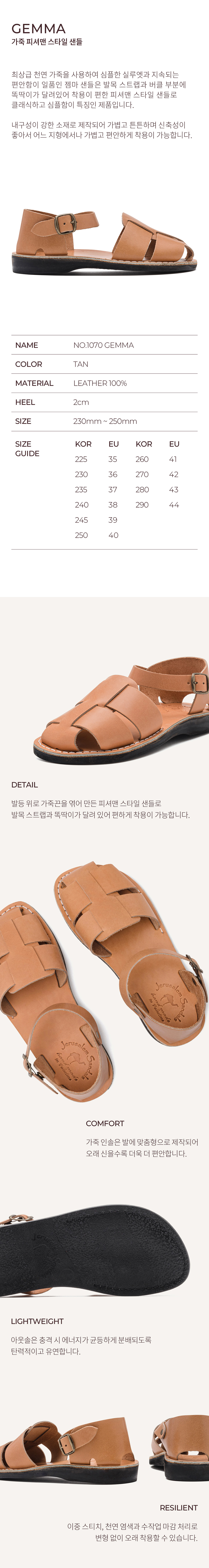 예루살렘 샌들 1070 젬마 샌들 탄