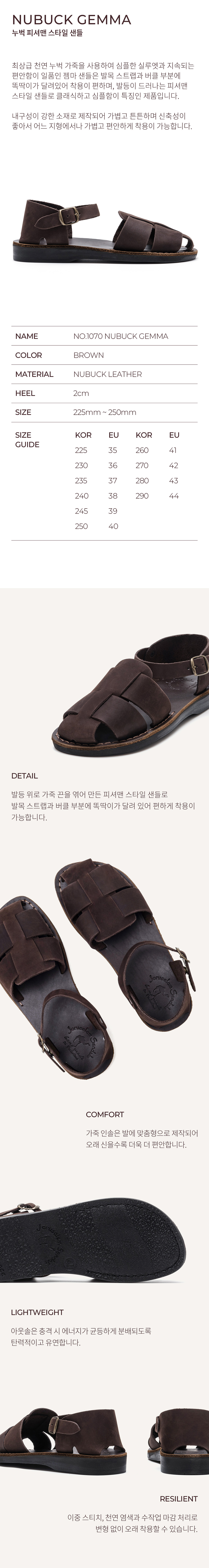 예루살렘 샌들 1070 젬마 샌들 누벅 브라운