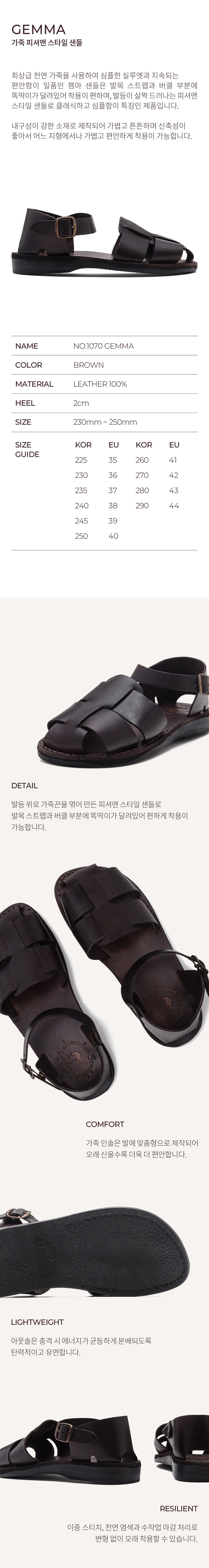 예루살렘 샌들 1070 젬마 샌들 브라운