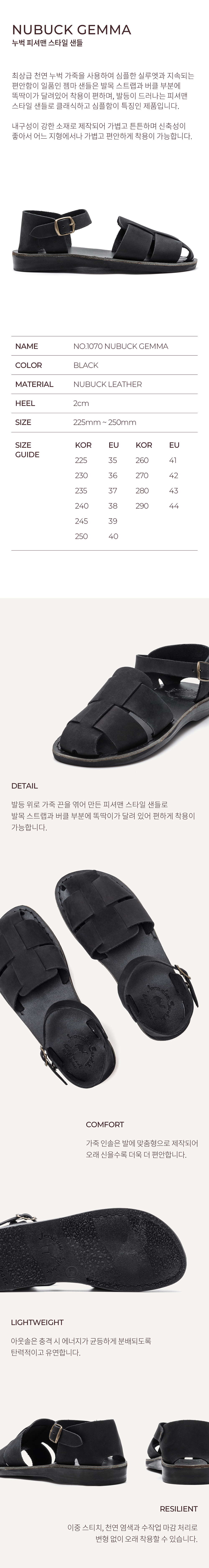 예루살렘 샌들 1070 젬마 샌들 누벅 블랙