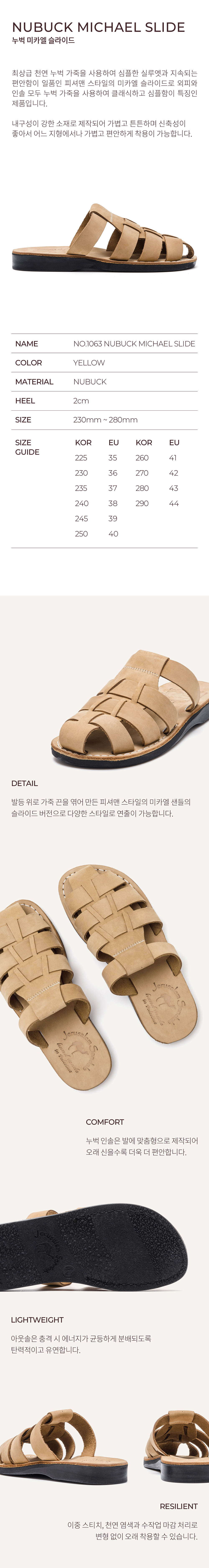 예루살렘 샌들 1063 미카엘 슬라이드 누벅 옐로우